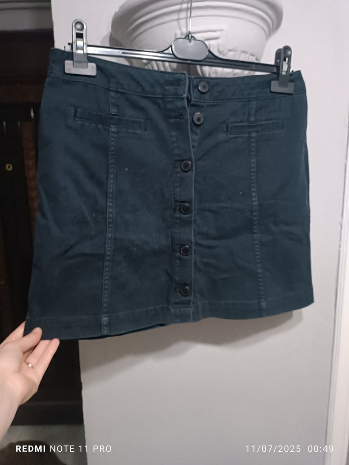 Düğmeli Siyah Denim Mini Etek
