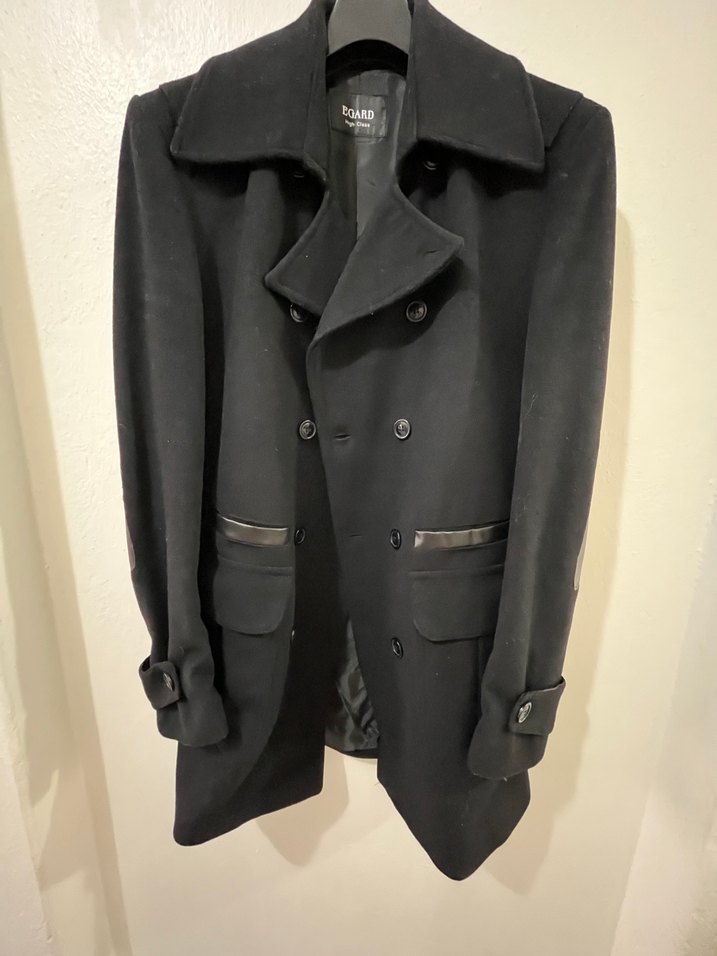 Düğmeli Siyah Deri Detaylı Erkek Kaban