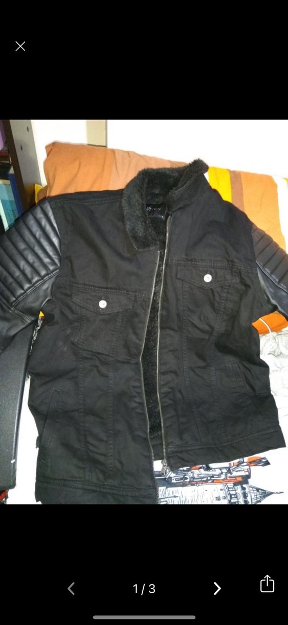 Düğmeli ön cep detaylı, uzun kollu siyah deri biker ceket. Normal kesim ve kırlangıç yaka ile günlük kullanıma uygundur.