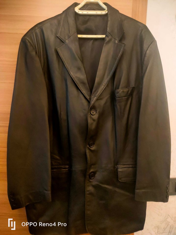 Düğmeli, siyah deri erkek ceket. Normal boy, uzun kollu ve regular fit. Notch yaka ile ofis kullanımı için uygundur.