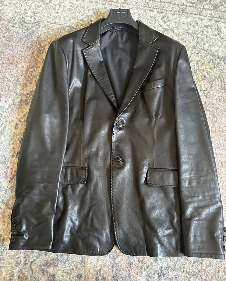 Düğmeli Siyah Deri Erkek Ceket
