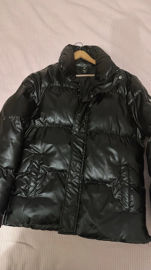 Düğmeli Siyah Deri Erkek Kışlık Mont