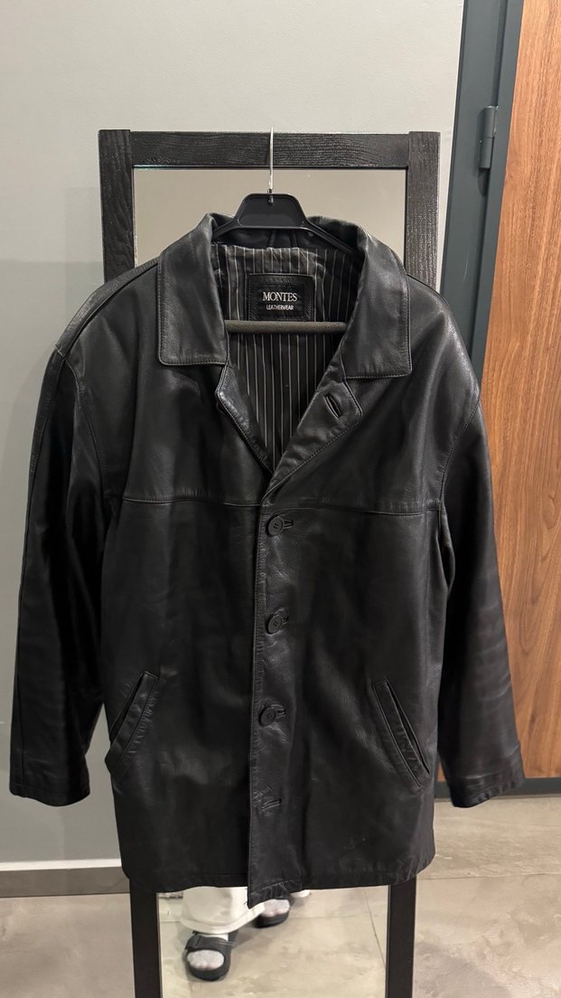 Düğmeli Siyah Deri Erkek Klasik Deri Ceket