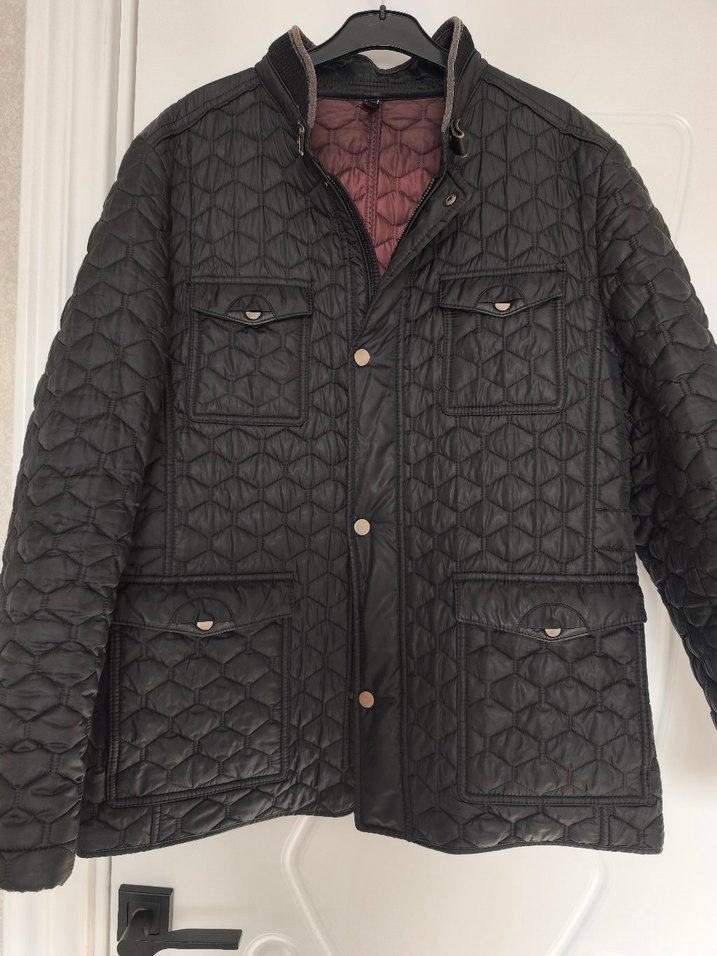 ORBİTA marka.Düğmeli, düğmeli kapamalı, düğmeli uzun kollu siyah deri mont. Kapitone desenli, çok cepli, günlük kullanıma uygun biker tarzı.