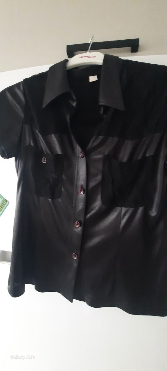 Düğmeli Siyah Deri gorunumlu Kadın Gömlek