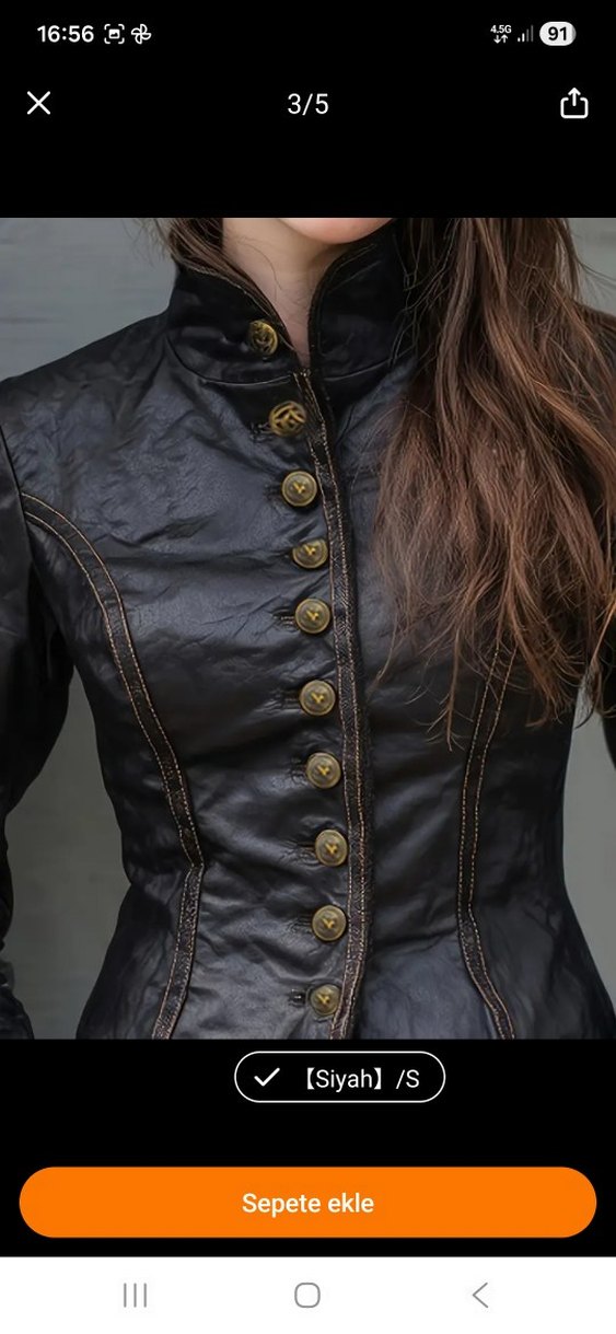 Düğmeli Siyah Deri Gotik Kadın Ceket