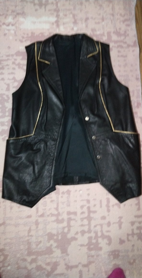 Düğmeli, siyah deri biker tarzı kolsuz yelek. Normal boy, regular fit ve klasik kesimle günlük kullanıma uygundur. bir gün giyildi hiçbir sorunu yok gerçek has deri yapı mıdır İnternette de gerçek derilerden 1000 kat daha ucuz markasını bilmiyorum öylesine bir markayı işaretledim ama belli değil