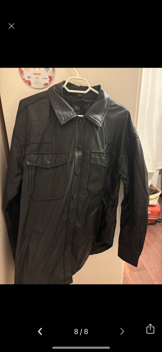 Düğmeli önü, notalı yaka ve uzun kollu siyah deri ceket. Salaş kesimi ve midi boyuyla sokak stiline uygun rahat bir parça. Fazlalıktan satılıktır