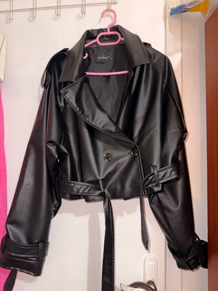 Düğmeli, siyah deri ceket. Salaş kesimli, midi boyda ve belde kemer detaylı, sokak stiline uygun. Ürünü çok az kullandım giymediğim için satıyorum.