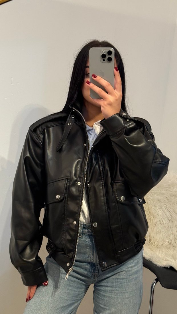 KENDİ MAGAZA ÜRÜNÜM 0 ÜRÜNDÜR S/M MEVCUT Siyah deri ceket, yüksek yakalı, düğmeli ve bol kesimdir. Uzun kollu ve midi boydur, günlük kullanım için uygundur.