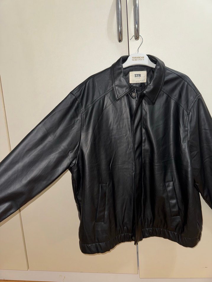 Düğmeli Siyah Deri Kadın Ceket