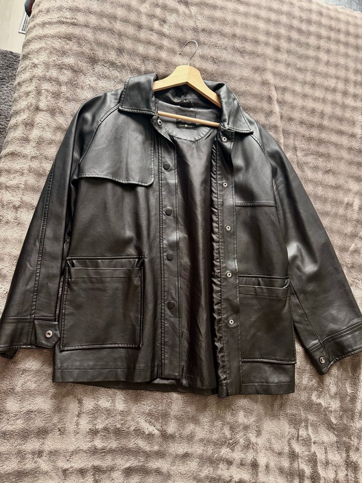 Yakasında küçük bir soyulma var görsellere ekledim birde düğme kopuk bu ikisi tadilat yapılınca düzelir bu sebepten uygun fiyata bırakıyorum . Düğmeli, siyah deri ceket, notalı yakaya ve uzun kollara sahiptir. Midi uzunlukta, regular fit, sokak stiline uygun, ön cep detaylı ve desensizdir.