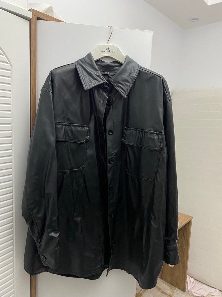 Düğmeli Siyah Deri Kadın Ceket