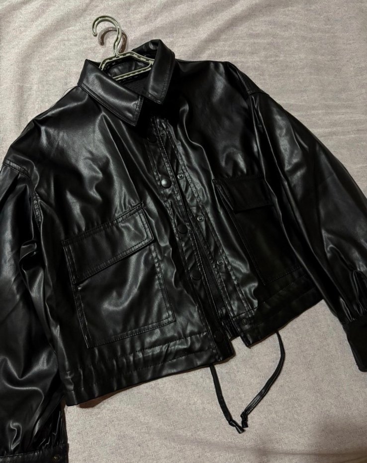 Düğmeli önü ve askılı kolları olan siyah deri ceket. Notlu yaka ve bol, midi boy kesime sahiptir, günlük kullanıma uygundur. Hiç giyilmedi, etiketi üzerinde. Sadece deneme amaçlı alındı. Yumuşak ve kaliteli suni deri, tok duruşlu. Oversize kalıp havası var, kombinlemesi çok kolay. Günlük, streetwear ve cool tarz için birebir. Beden: L Durum: Sıfır / Etiketli Düğmeli kapama, cep detaylı Defosuz Mağaza fiyatlarına göre çok uygun bıraktım.