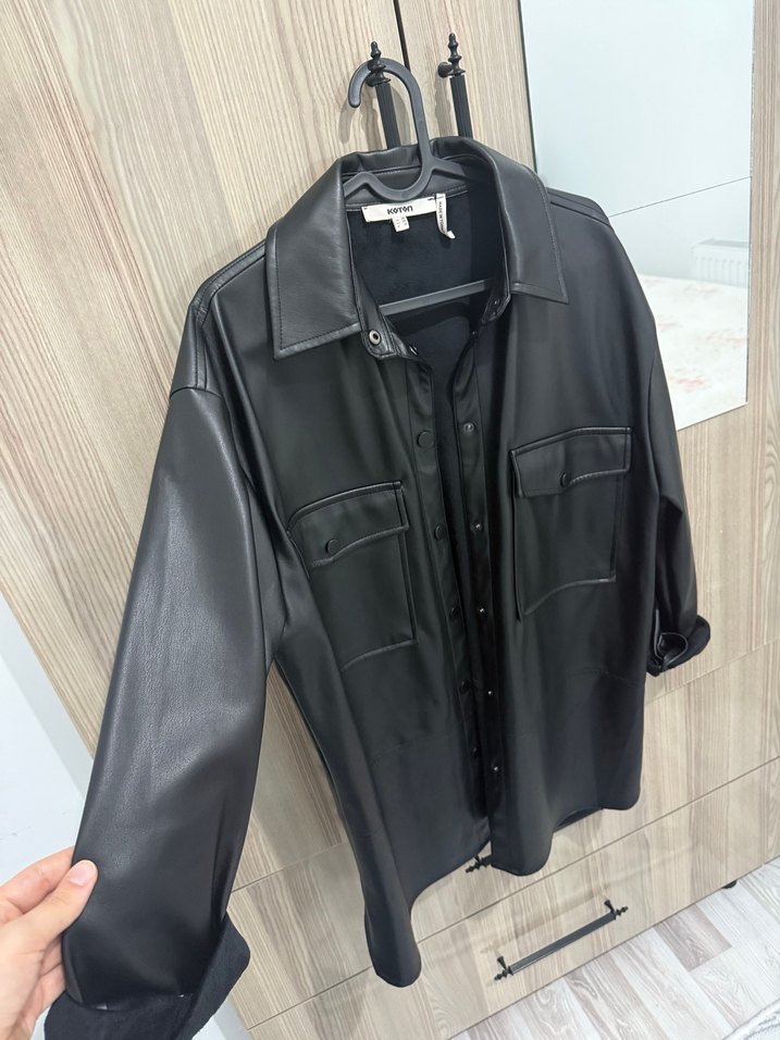 Düğmeli Siyah Deri Kadın Ceket KOTON