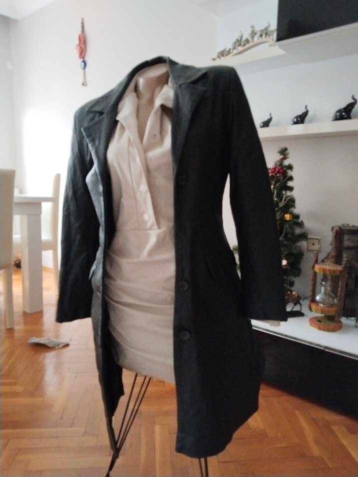 Düğmeli, yakalı, uzun siyah deri kadın ceket. İş ortamına uygun, regular fit ve uzun kollu, gotik tarzda.tek düğmesi.kopuk gerçek deri