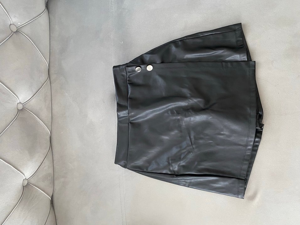Düğmeli detaylı, siyah deri kadın etek Midi boy ve minimal sokak stili ile günlük kullanıma uygun.