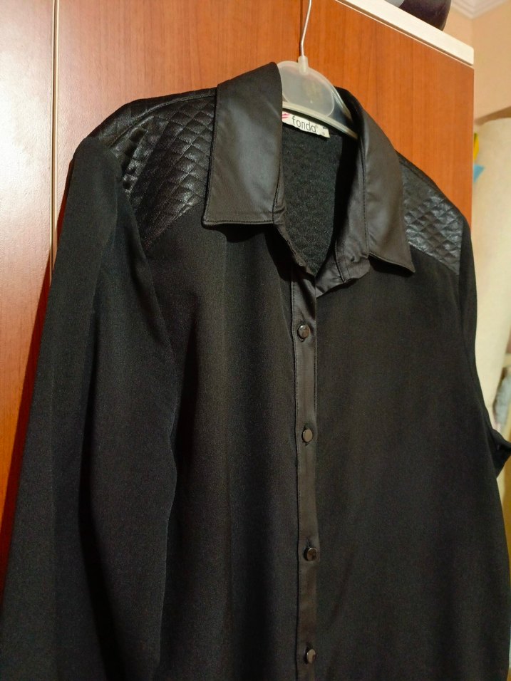 Düğmeli Siyah Deri Kadın Gömlek