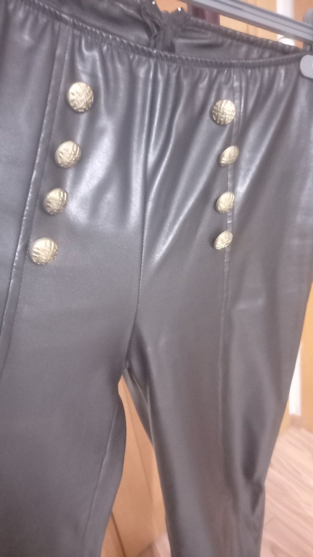 Düğmeli detaylı, midi boy, oturan kesim siyah deri pantolon. günlük için uygun, şık goth tarzını yansıtır. bir defa kullandim