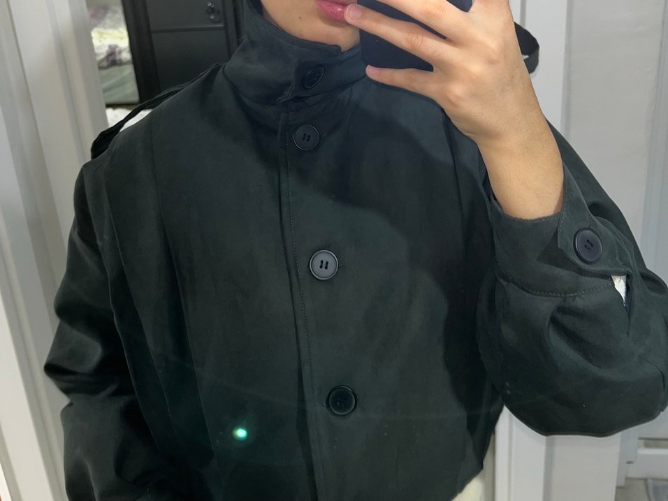 Düğmeli Siyah Deri Kadın Trençkot