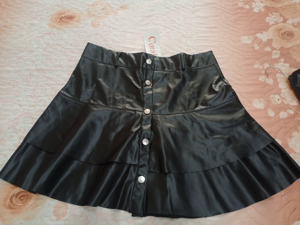 Bu siyah deri midi etek, parlak dokusu ve düğmeli önü ile gotik tarzı yansıtır.