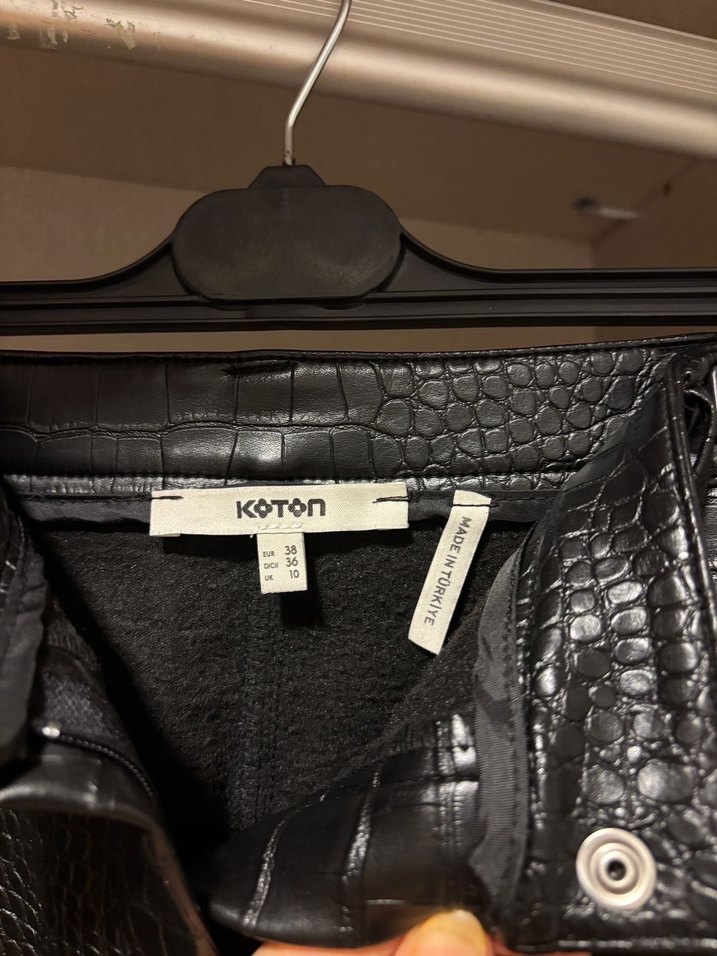 Düğmeli, siyah deri midi şort, yılan desenli ve fitted kesimlidir. Normcore tarzıyla romantik akşamlar için uygundur. Marka: KOTOn.