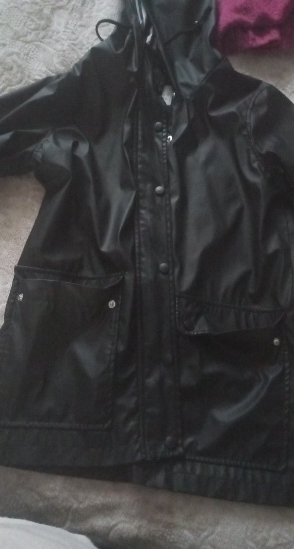 Uzun kollu, düğmeli siyah deri midi yağmurluk. Notlu yaka ve bol kesim özellikleriyle günlük kullanıma uygun, trend gotik tarzda.