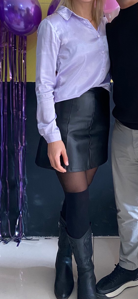 Düğmeli ve şık tasarımlı, siyah deri mini etek, ofiste trend görünüm için uygundur.