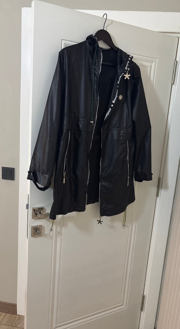 Düğmeli Siyah Deri Uzun Ceket - Görsel 4