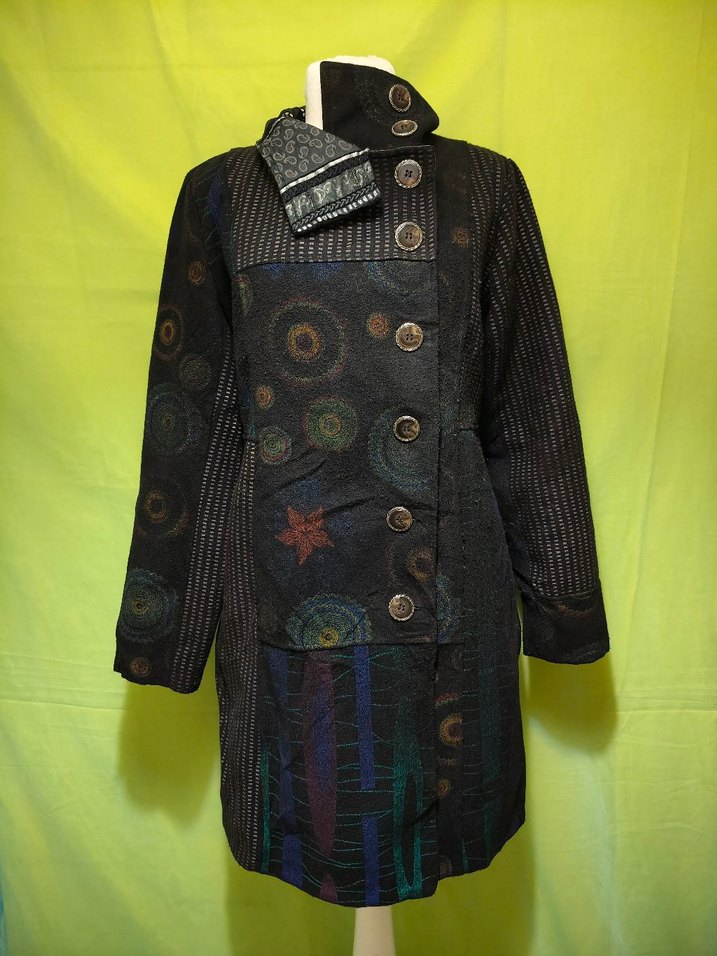 Düğmeli Siyah Desenli Uzun vintage Kabanı
