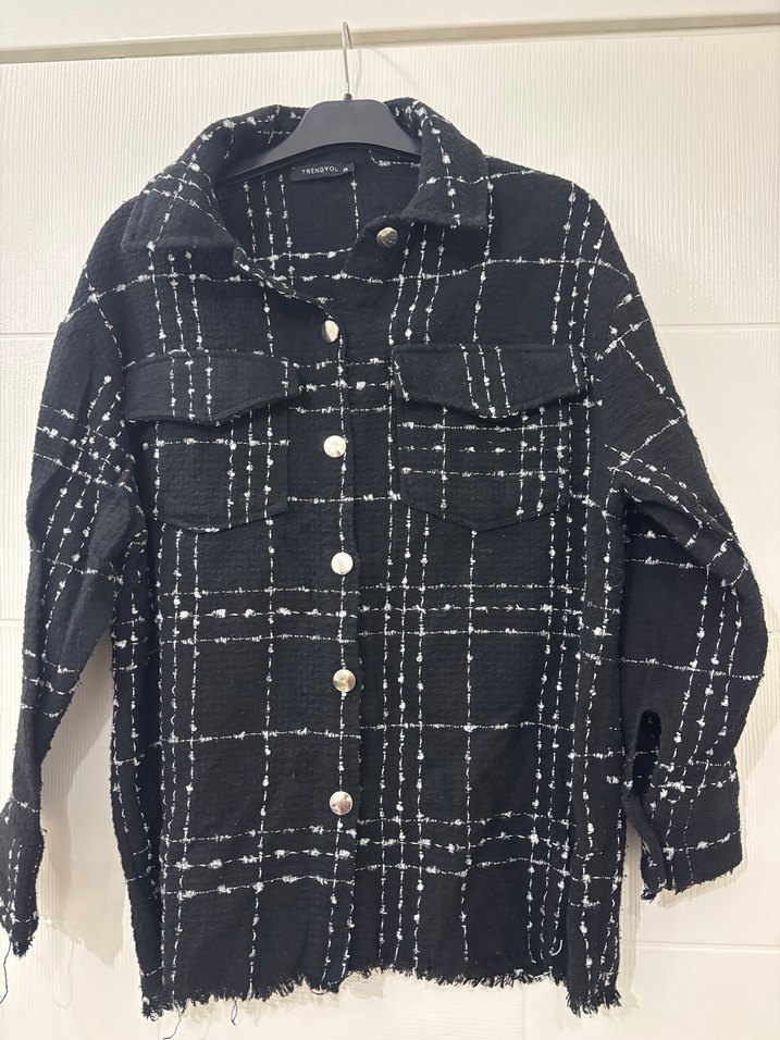 Düğmeli Siyah Ekose Kadın Ceket
