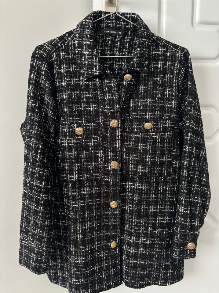 Düğmeli Siyah Ekose Kadın Ceket