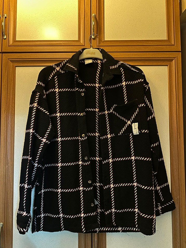 Uzun kollu, düğmeli ve yakalı siyah ekose gömlek. Normal kesim ve pamuklu kumaştan, günlük kullanım için uygundur.Kumaşı çok kalındır ,hırka gibi de giyilebilir.Çok iyi durumda hiçbir deformesi yok.