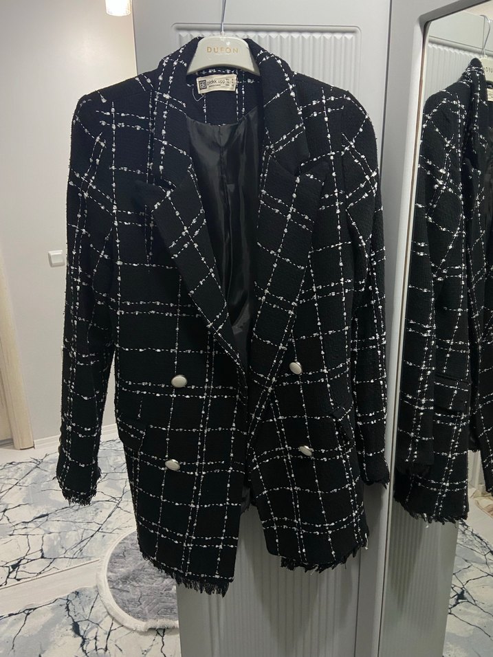 Düğmeli siyah ekose blazer, sentetik kumaştan, normal kesim ve askılı kollu. Notlu yaka ve midi boy, trend sokak stiline uygun. Blazer ceket kalın kumaşı var içi astarlı tüylenme yok sadece görselde de paylaştığım üzere arkasında hafif deformesi var elde dikildiği zaman belli bile olmuyo çok şık çok rahat bir ürün