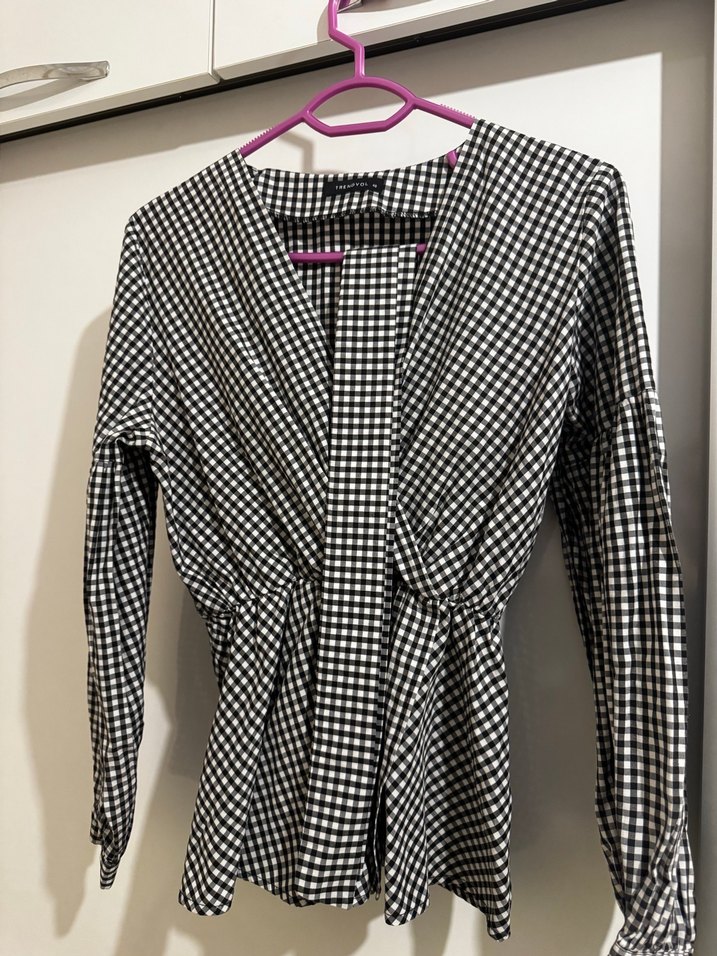 Düğmeli Siyah Ekose V Yaka Kadın Gömlek