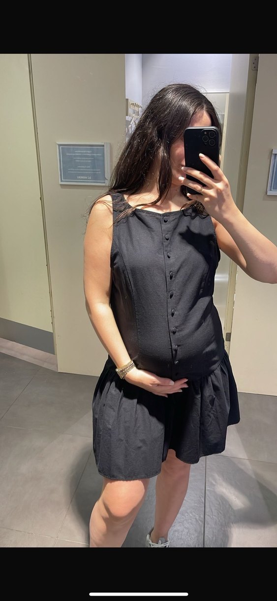 Pamuklu, düğmeli, askısız siyah elbise . Salaş kesim, kolsuz ,günlük rahat kullanım için uygun. Normal l beden giyen birine de olur normal reyondan aldım ,hamileligimde tercih ettim bir kez giyildi sorunu yok lcwden aldım öne çıkması için zara markasını seçtim fakat ürün kaliteli