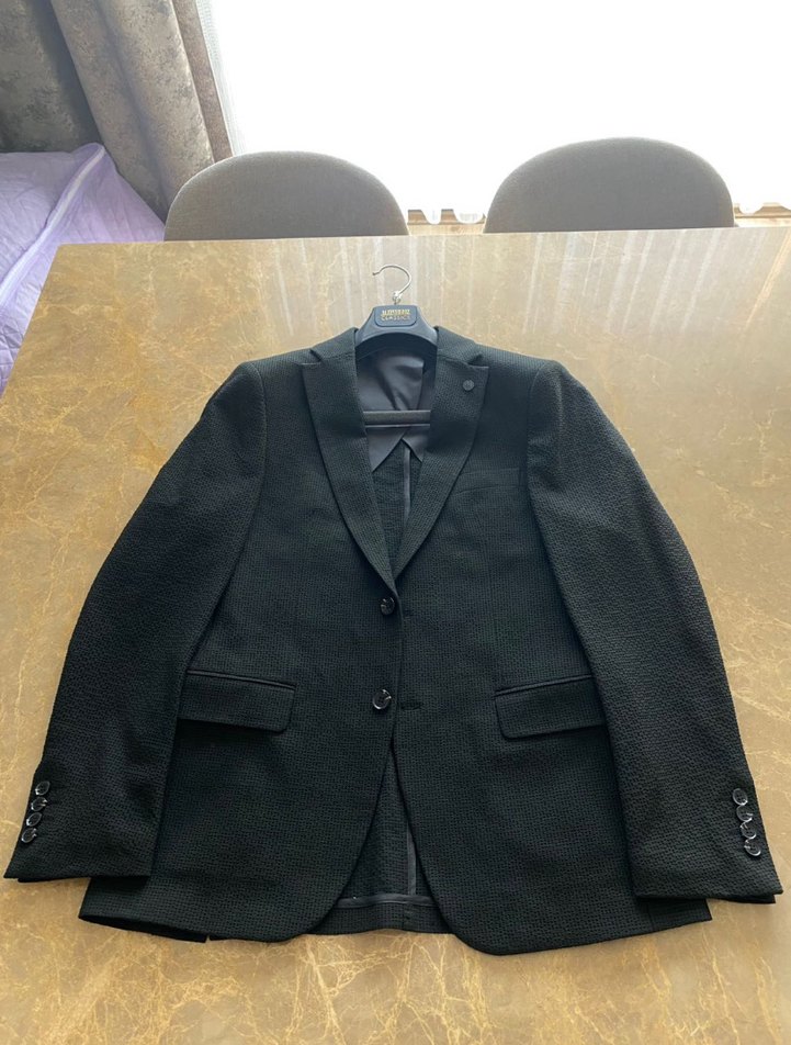 Düğmeli, siyah renkli erkek ceket. Notch yaka, normal kesim ve uzun kolludur. Ofis kullanımı için uygundur. ️