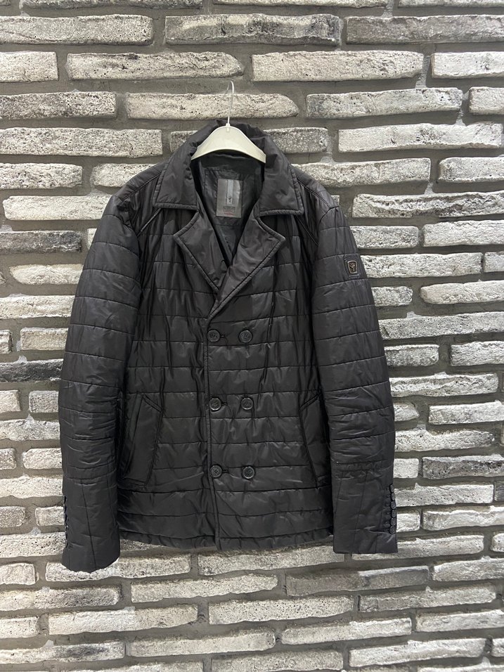 Düğmeli ön kısmı ve keskin yakasıyla siyah erkek ceket, hafif keten kumaştan üretilmiştir. Normal kesim, uzun kollu ve midi boydadır, günlük sokak stili için uygundur.