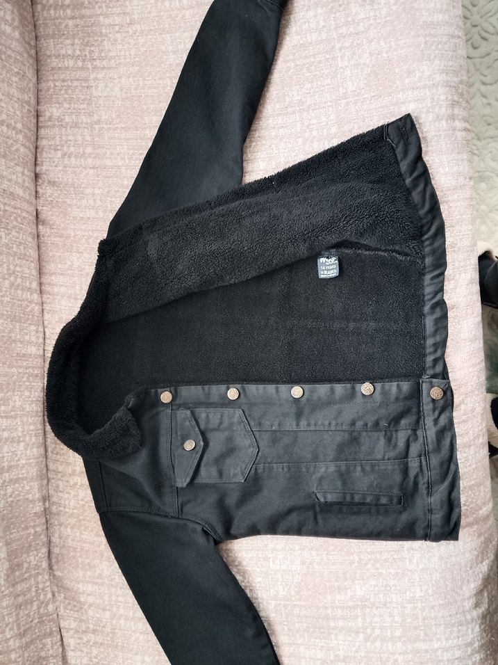 Düğmeli ön cep detaylı, sentetik kumaştan siyah erkek çocuk ceketi. Notch yaka ve regular fit ile rahat bir sokak stili sunar. ürün temiz sağlam sorunsuz 1 defa kullanılmıştır