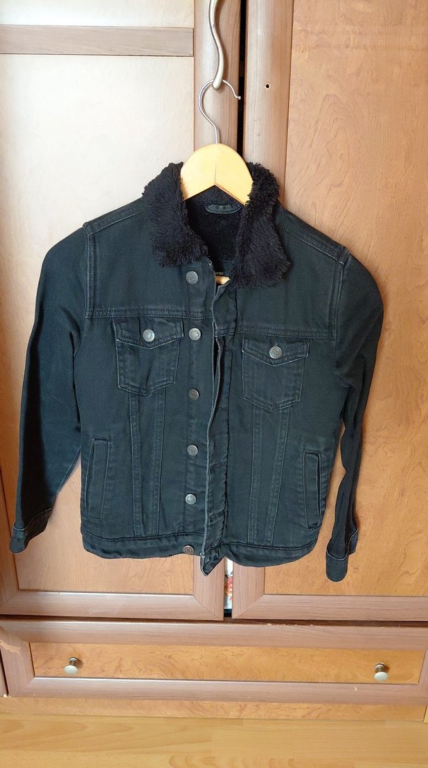 Düğmeli, yakalı ve uzun kollu siyah erkek Çocuk kot ceket Normal boyda, dar kesim ve desen içermeyen günlük sokak stili için uygun bir model. içi polar