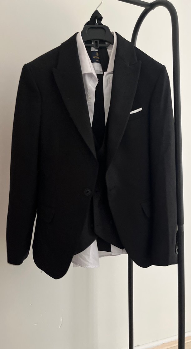 Düğmeli önü, uzun kollu, klasik yakalı siyah erkek takım elbisesi. Ofis kullanımına uygun, normal boy ve regular fit kesime sahiptir.erkek çocuk