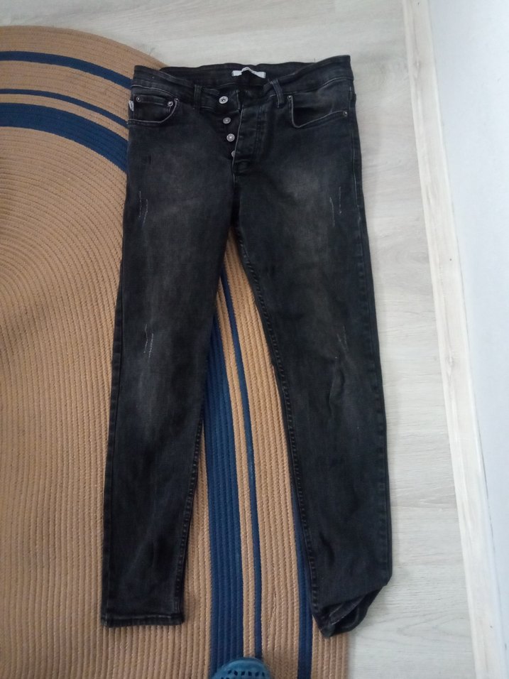 Düğmeli Siyah Erkek Denim Jean