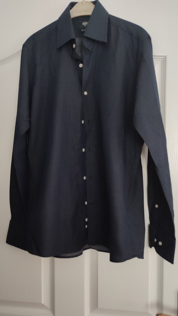 Düğmeli, siyah erkek gömlek, yakası kesimli ve uzun kolludur. Normal kesim ve sentetik kumaştan üretilmiştir, ofis ve sokak stili için uygundur. En 51 boy 71