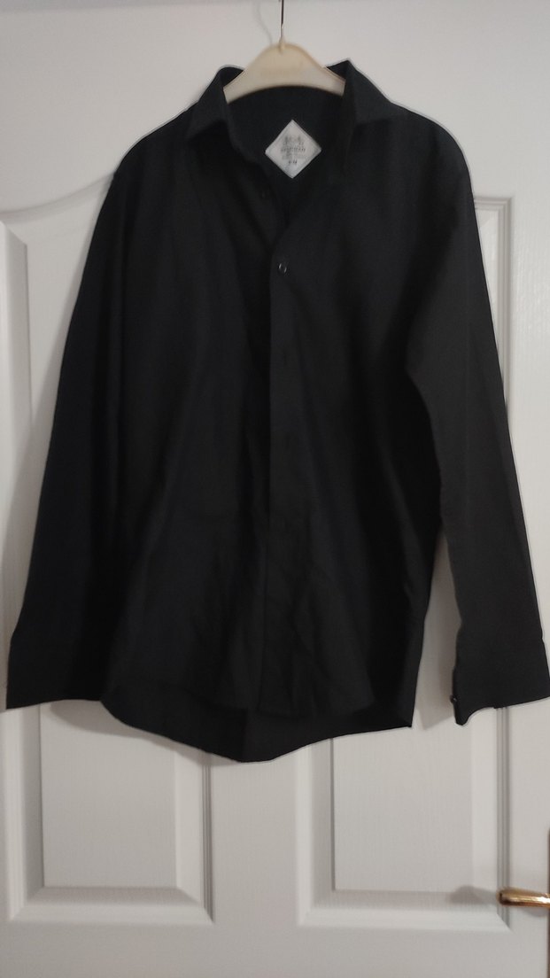 Düğmeli ve uzun kollu siyah erkek gömleği, ipeksi kumaştan yapılmış, normal boy ve regular fit ile ofis kullanımı için uygundur. En 49 boy 79