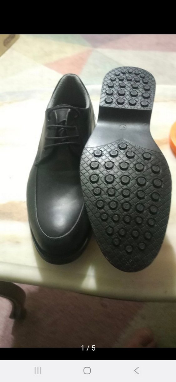 Düğmeli tasarıma sahip siyah erkek klasik ayakkabı, kauçuk tabanlıdır. İş ve günlük kullanım için uygundur. Düz ve desensiz tarzda.