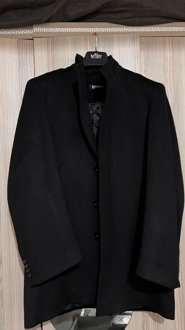 Düğmeli Siyah Erkek Klasik Uzun kaban ürün hiç giyememiştir