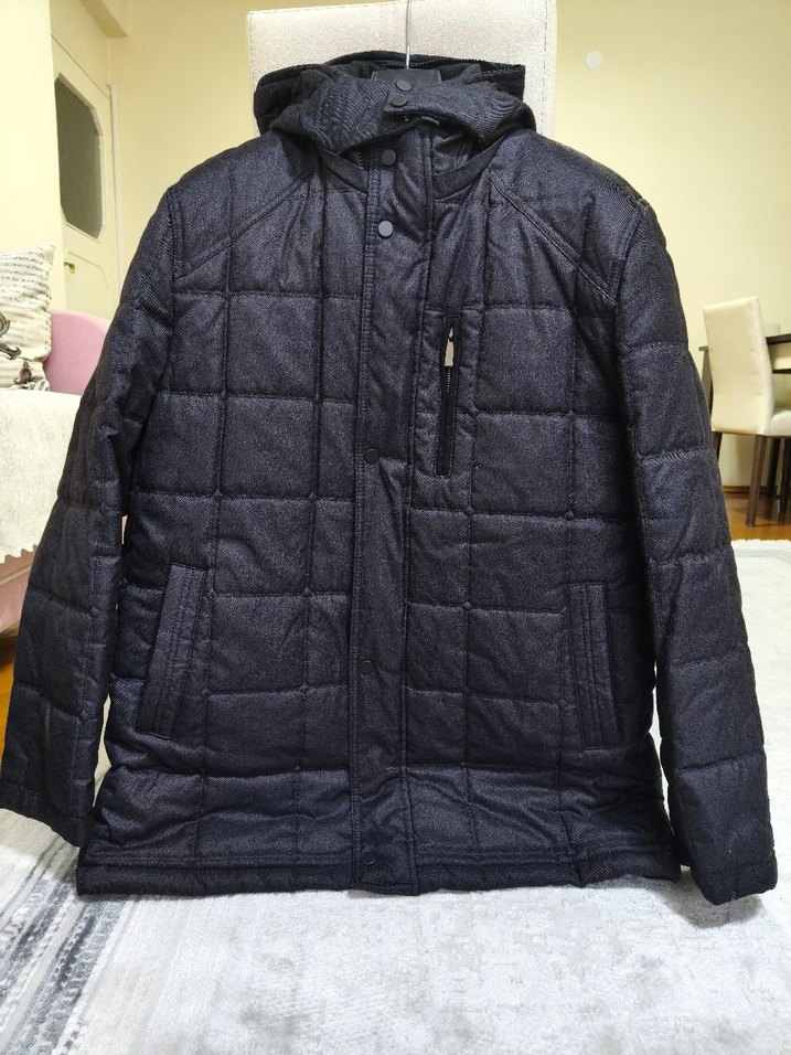 Düğmeli, normal boy midi erkek mont. Notch yaka ve uzun kollu, rahat kesim ve yumuşak, sıcak kumaştan üretilmiştir. Günlük sokak stili için uygundur.