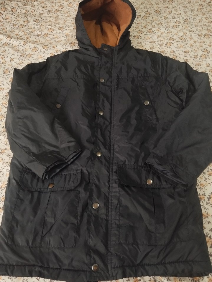 Düğmeli ön cep, notalı yaka ve uzun kollu siyah erkek mont. Rahat kesim, midi boy ve yumuşak sıcak kumaştan. Dış mekan için uygundur.
