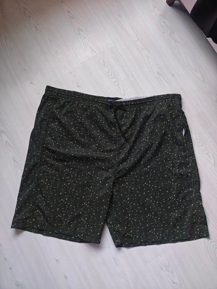 Düğmeli, siyah renkli, rahat kesim erkek mini şort. Hafif desenli ve dış mekan kullanımı için uygundur. battal beden. 150 kiloya kadar olur.