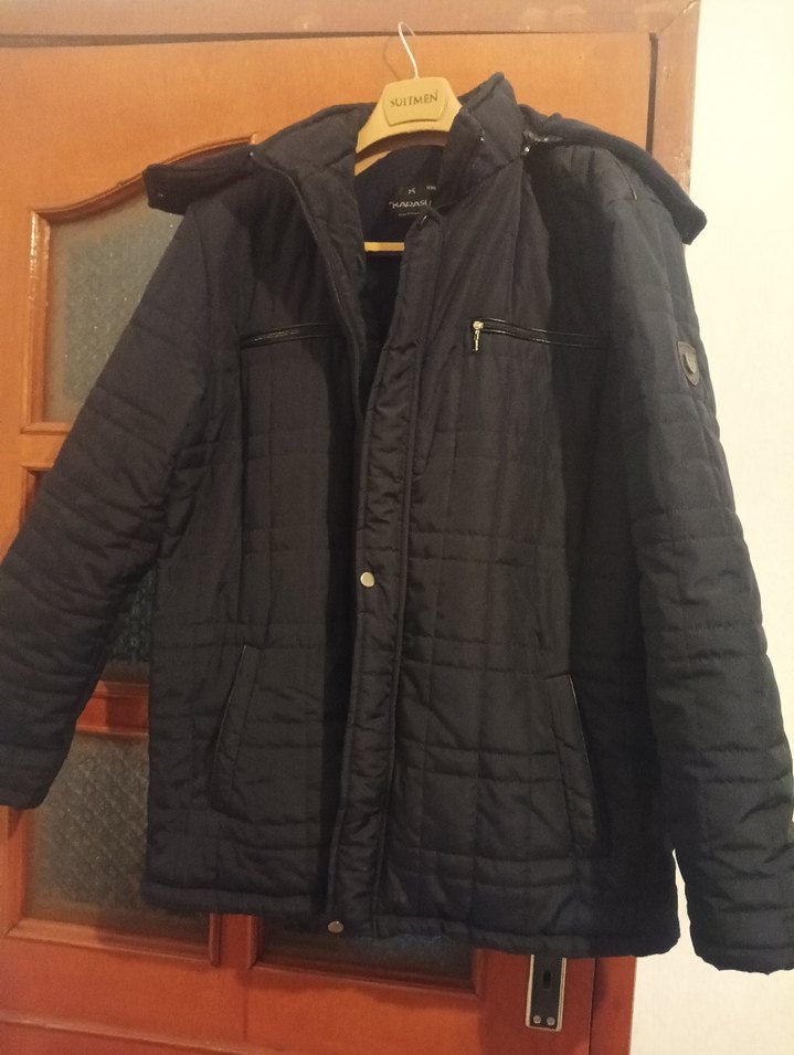 Erkek siyah mont. Giyilmedi Hiçbir sıkıntısı yoktur. İçi kadifedir ve sıcak tutar.